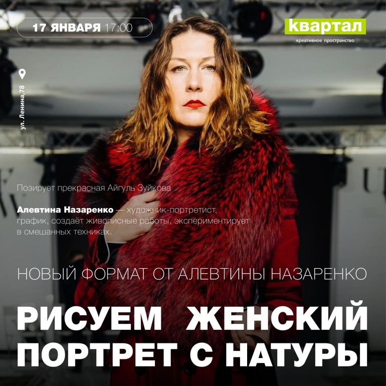 17 января в 17.00 в креативном пространстве «Квартал» (ул. Ленина, 78) художник-портретист Алевтина Назаренко проведет мастер-класс по рисованию женского портрета с натуры. Подробности здесь.