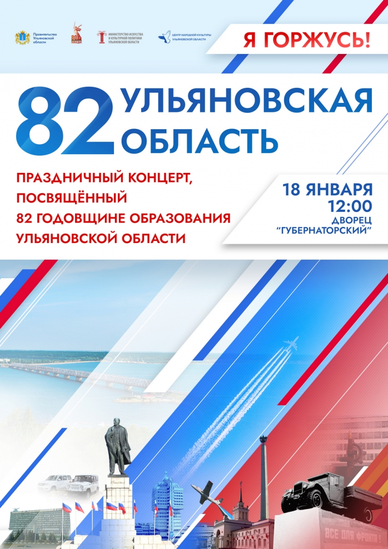 18 января в 12.00 во дворце культуры «Губернаторский» (ул. Дворцовая 2/13) состоится праздничный концерт, посвященный 82-й годовщине образования Ульяновской области.