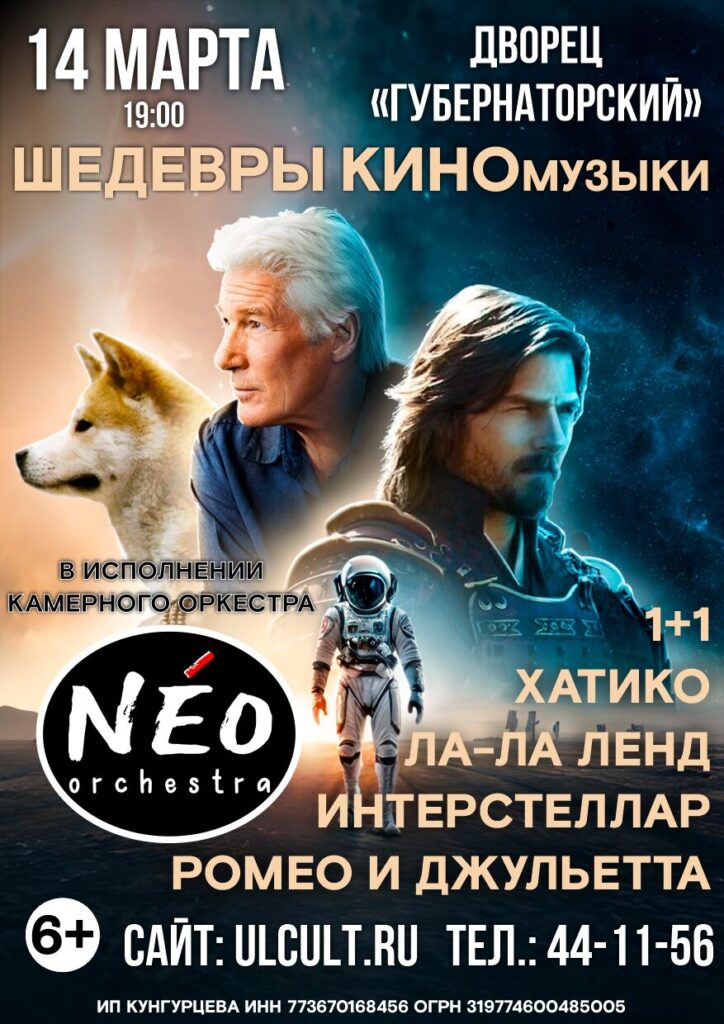 NÉOrchestra под управлением Ивана Нужина исполнит легендарную неоклассическую музыку. В программе: мощные темы Ханса Циммера, Людовико Эйнауди, Макса Рихтера и других. Погрузитесь в атмосферу «Интерстеллара», «1+1», «Ла-Ла Ленда» и других культовых фильмов.