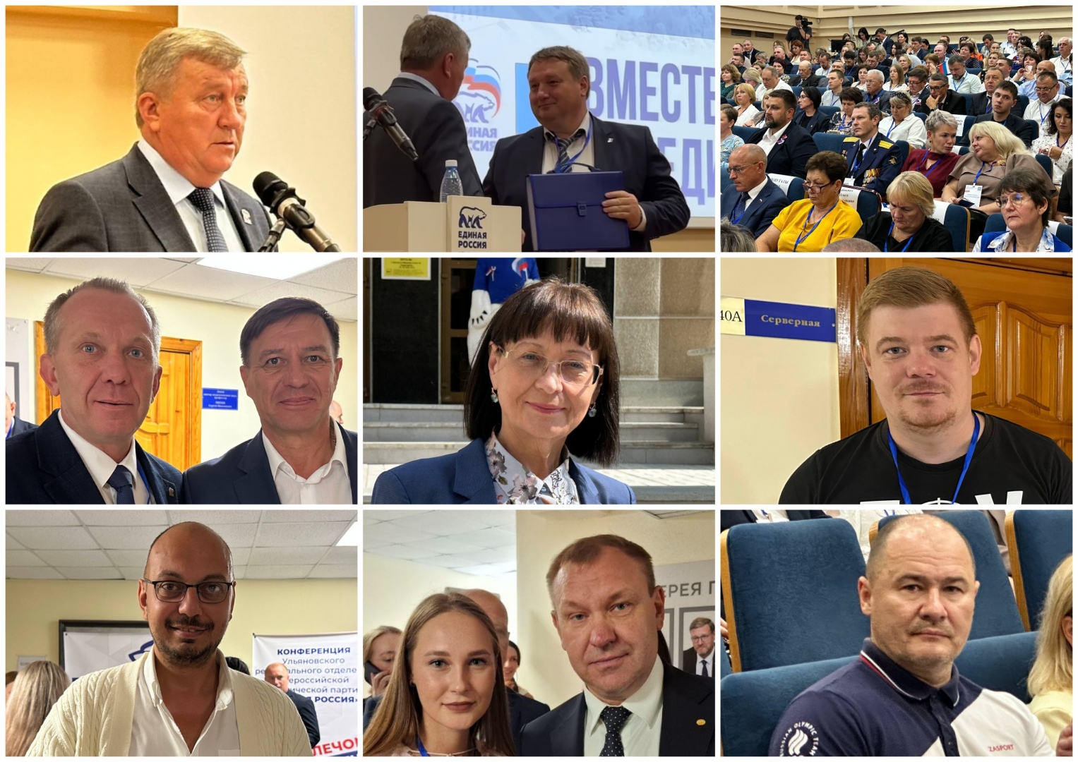 В первом ряду (справа налево): депутаты ЗСО Сергей Панчин, Николай Лазарев, Алексей Кошаев, Олег Лобунец, Марина Беспалова, председатель Гордумы Илья Ножечкин, рядом с ним спикер ЗСО Валерий Малышев, секретарь Ульяновского регионального отделения ЕР Владимир Камеко и так далее. В первом ряду также замечен депутат Госдумы Дмитрий Каденков.