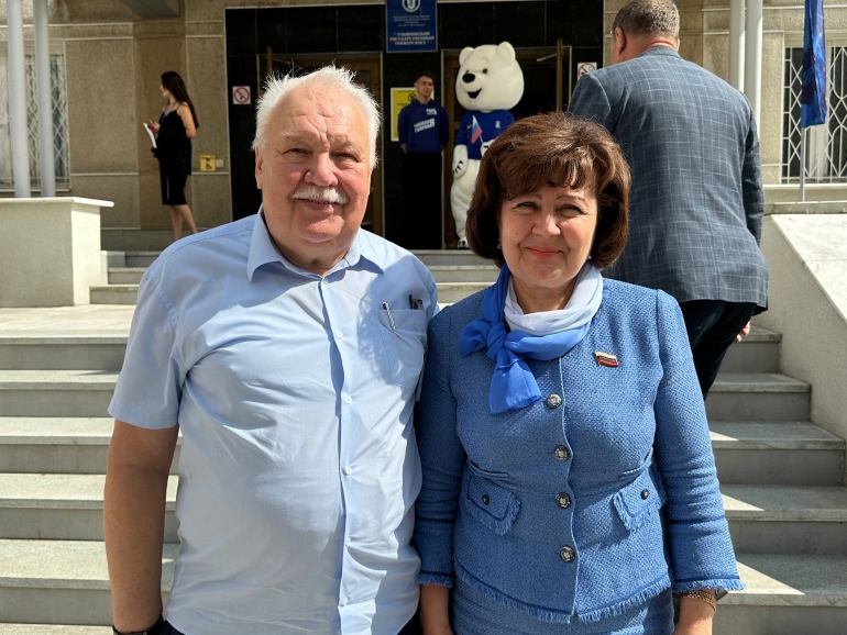 Депутаты Гордумы Рамиль Абитов и Алсу Айзатуллина, как сговорились, выбрав голубые и синие тона в одежде.
