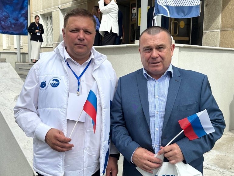 Депутат ЗСО Константин Анохин и депутат Гордумы Дмитрий Сауров с флажками — праздник же!