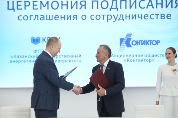 Третьего апреля в Казани прошла торжественная церемония подписания соглашения о взаимном сотрудничестве между АО «Контактор» и ФГБОУ ВО «Казанский государственный энергетический университет». В ней приняли участие генеральный директор ульяновского предприятия Максим Левин и ректор КГЭУ Эдвард Абдуллазянов.