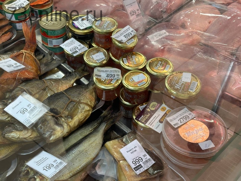 В «Магните» соленый натурпродукт стоит от 273 до 533 рублей за сто граммов, чуть дороже - в «Победе» (от 286 рублей) и «Пятерочке» (от 368,3 рубля), где нашего корреспондента удивили: