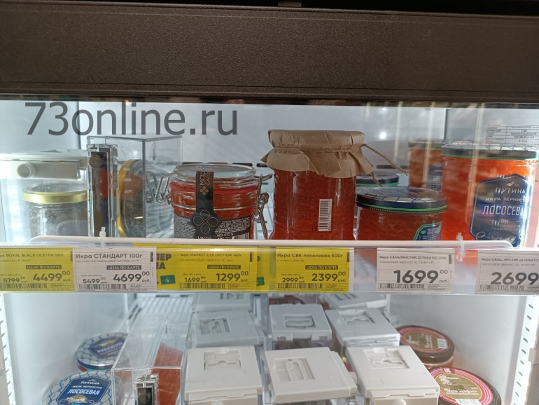 Ценовой рекорд побили специализированные рыбные магазины Ульяновска. Так, в «Себастьяне», «Sea food» и «Рыбном островке» за сто граммов натуральной икры горбуши нужно отдать от 539 до 650 рублей. Деликатес расфасован в пластиковые контейнеры по 250 граммов. Самая дорогая – икра кеты, цены доходит до 760 рублей за 100 граммов.