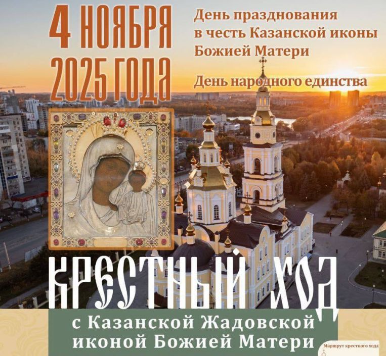 В Ульяновске 4 ноября состоится Крестный ход. Шествие православных верующих с Казанской Жадовской иконой Божией Матери в День народного единства начнется в 11:00.