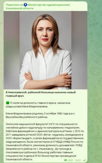 Например, на прошлой неделе они сделали нового главврача Николаевской больницы Елену Шадышкову сотрудником ГИБДД и полицейским дознавателем. Недостоверная информация провисела в официальных соцсетях Минздрава весь день. Представляем, как стыдно было министру Марии Шалягиной, ведь за глупую ошибку кадров и оскорбления Шадышковой в соцсетях, вероятно, пришлось извиняться ей.