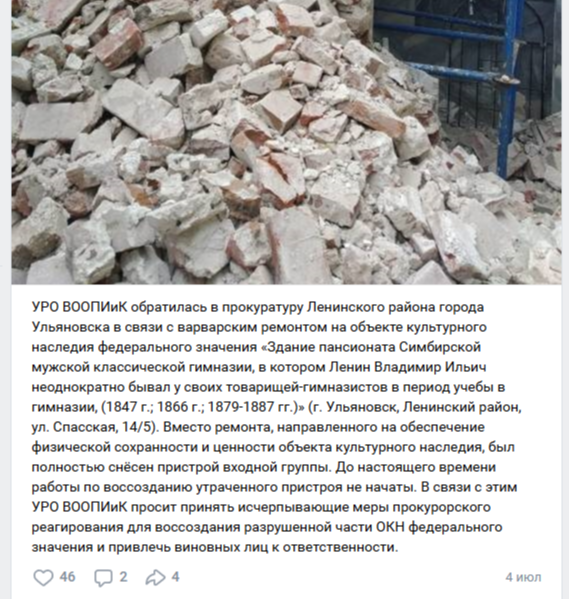 О смерти Ирины Зубовой скорбит всё краеведческое сообщества Ульяновска. Историк активно вела группу регионального ВООПиК. Моментально откликалась на любые враждебные действия по отношению к исторической застройке.