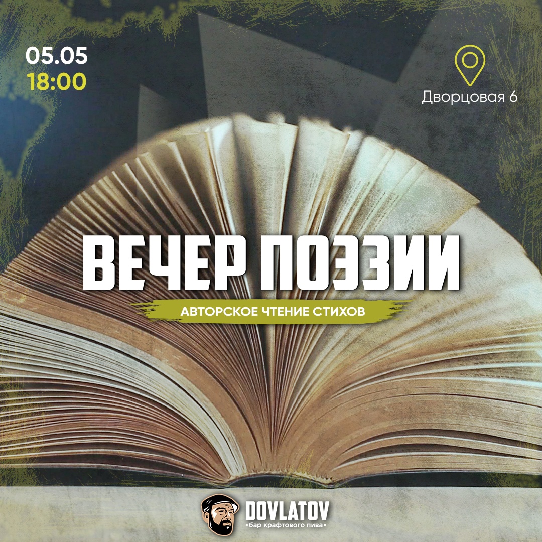 5 мая в 18:00. Место: бар DOVLATOV на ул. Дворцовая, 6.