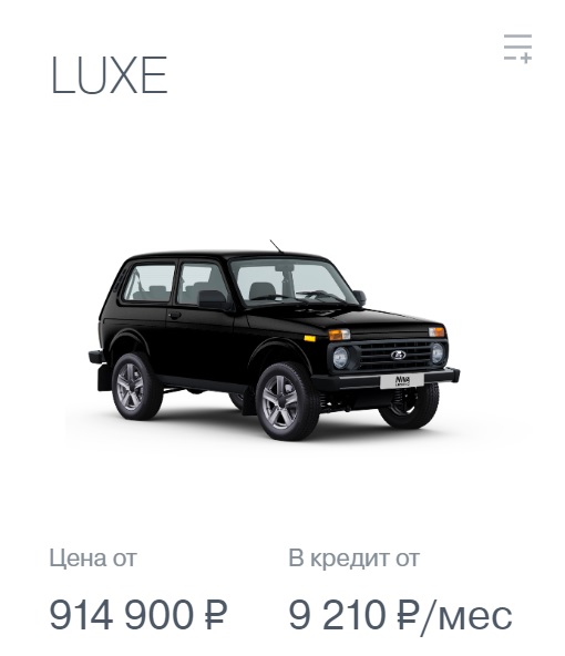 Трехдверную Niva Legend Luxe предлагают минимум за 914 900 рублей – машина есть в наличии в «Авторае».