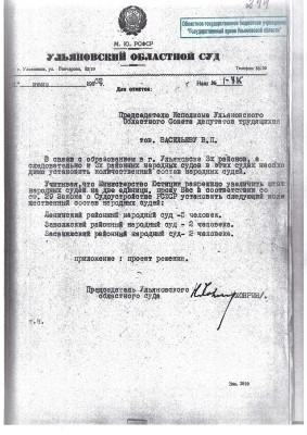 Судопроизводство общей юрисдикции на территории г. Ульяновска осуществлял в этот период Ульяновский городской суд.