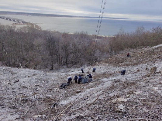 Как рассказали в Горзеленхозе, отходы на Волжском косогоре убирали с помощью «летающего» мусорного контейнера. Бригады учреждения приступили к работам сегодня, 9 декабря.
