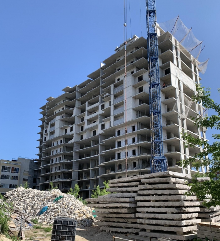 При этом до 15 июня на Красноармейской шла работа: монтировали железобетонные плиты перекрытий пятого этажа, выполняли кирпичную кладку стен. После денег на кирпичную кладку не осталось, сейчас генподрядчик ведет устройство монолитного пояса пятого этажа и некоторые другие работы.
