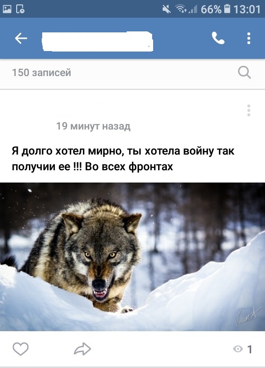 Валерия периодически мониторила страницу Рашада во "Вконтакте". На ней было много постов с фотографиями волков и подписями в духе "Я долго хотел мирно, ты хотела войну так получи ее!!! Во всех фронтах" (орфография и пунктуация сохранены - прим. ред.). Валерия уверена, что такие записи были адресованы ей - она называет это «психологической атакой» со стороны мужчины, который хочет, чтобы она постоянно боялась.