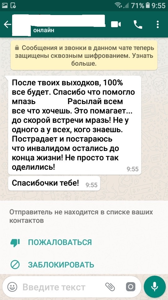 - Когда? Не было такого, чтобы я на ровном месте стоял и говорил, что вот так, вот так будет. Она при этом провоцирует. Да, я такие вещи говорил, но в ответ только. У меня даже запись где-то валяется, я её полиции показывал. Я даже говорить не хочу, какие она слова говорила. Любой человек на моем месте так же бы ответил. Она не только меня оскорбляла, но и моих родителей, происхождение. Она знает, как провоцировать. Ну, и в ответ, конечно, я добрые слова не говорил. Она провоцировала и в этот момент записывала. То, что написала она, удаляла, а мои ответы она оставила. И выложила — типа вот я такие вещи пишу.
