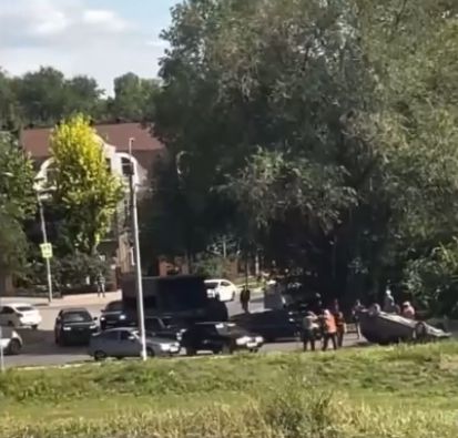 Сегодня, 11 августа, в четвертом часу дня в Засвияжском районе Ульяновска произошло ДТП6 на улице Автозаводской перед заездом на мост перевернулся автомобиль «Лада Калина».