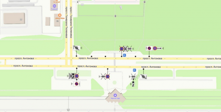 Как пояснили в Управлении, сейчас на участке около дома №1 по проспекту Антонова до проспекта Генерала Тюленева установлены знаки «Остановка запрещена», которые игнорируются автовладельцами.