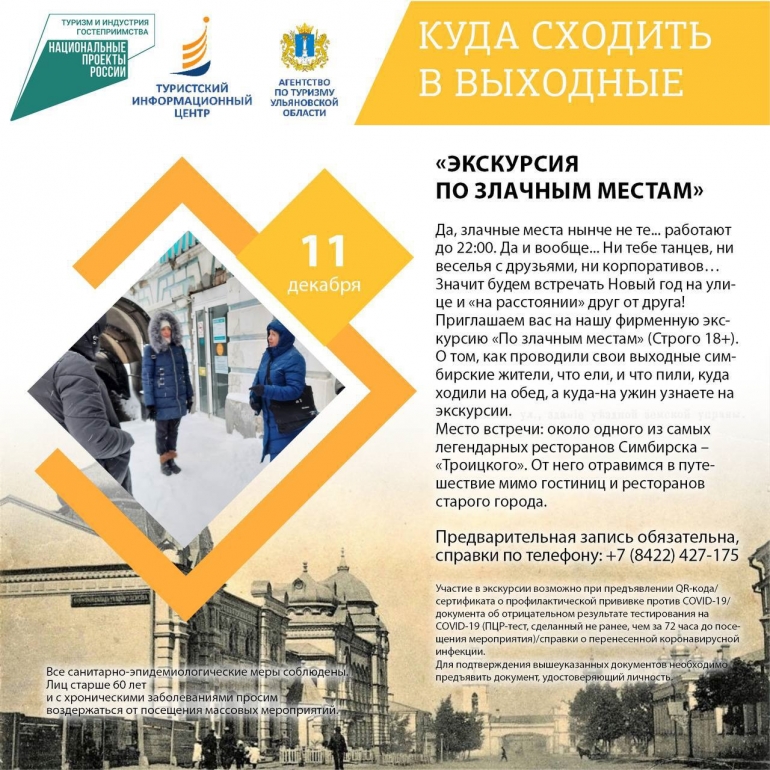 «Экскурсия по злачным местам». Место встречи: около одного из самых легендарных ресторанов Симбирска – «Троицкого». От него отравимся в путешествие мимо гостиниц и ресторанов старого города.