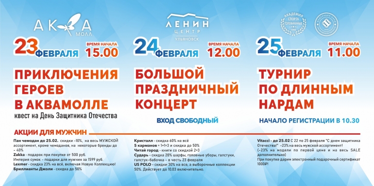 24 февраля с 12.00 до 17.30 на сцене ТРЦ Аквамолл, состоится большой праздничный концерт от ведущих музыкальных коллективов Ульяновской Филармонии: