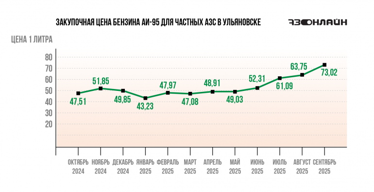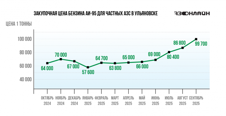 — Скачок цен объясняется просто: НПЗ подняли цены на свою продукцию. Если летом тонна АИ-95 стоила около 70 тыс. руб., то теперь — около 100 тыс. руб. Отсюда такая цена литра в розницу, — пояснили на АЗС.