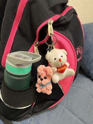 Также он поделился, что традиционно приобрёл для дочки брелок – мягкую игрушку, похожую на забавного розового щенка, которую она повесила на школьный портфель.