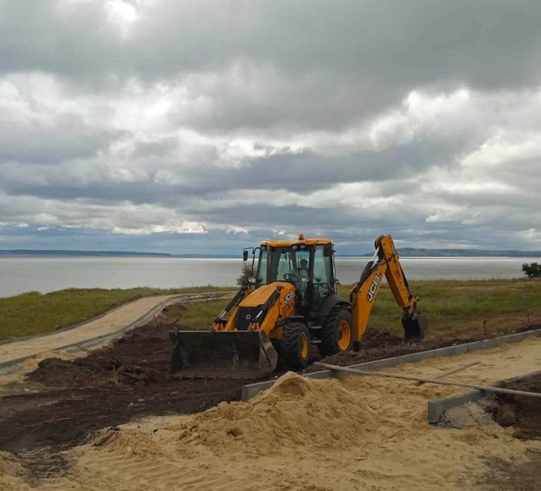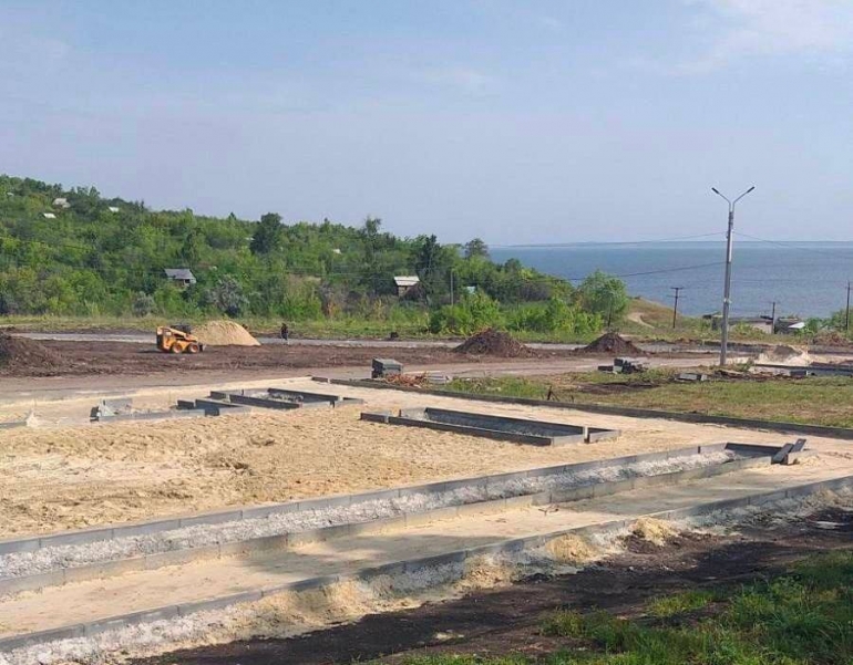 На сегодняшний день на объекте выполнена расчистка территории от поросли и аварийных деревьев, ведётся устройство территории под тротуары, детские площадки и фонтан, а также устройство пешеходных дорожек.