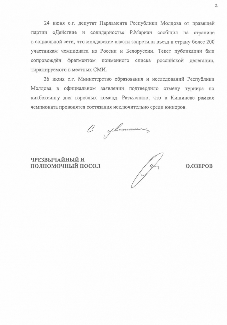 Издание sport24.ru со ссылкой на официальный канал достоверной информации правительства Республики Молдова опубликовал специальный пост, в котором объясняется, почему кикбоксеров не пустили на чемпионат: