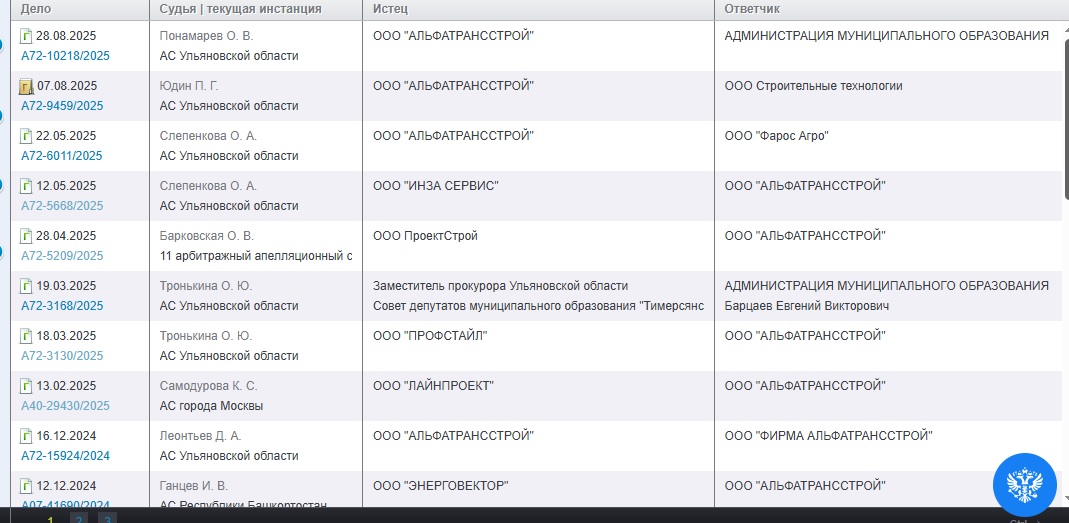 Несмотря на крупные заказы, фирма не спешит рассчитываться с поставщиками и субподрядчиками: в ульяновском арбитражном суде за 2025 год зарегистрировано четыре гражданских иска о взыскании задолженностей. Суммы составляют от 1 до 5 млн руб., по трем делам вынесены решения в пользу истцов. «Альфатрансстрой» оспаривает их в Самарском апелляционном суде.