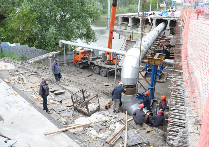 Новый участок ведущей от ТЭЦ-1 теплотрассы, располагающийся под мостом, готов на 70%. С 6 по 11 июня на нём предстоят переврезки в действующую сеть, поэтому будет ограничена подача горячей воды в Железнодорожный район.