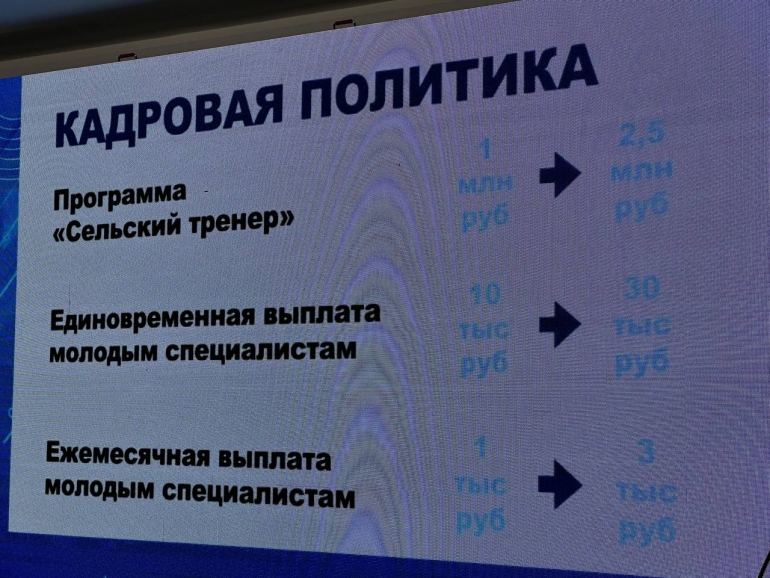 - Необходима индексация выплат участникам региональной программы «Сельский тренер» на приобретение жилого помещения с одного до 2,5 млн рублей.