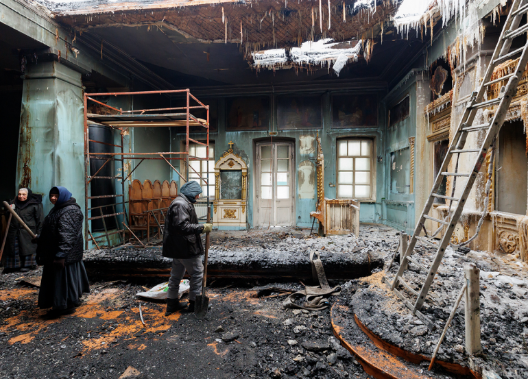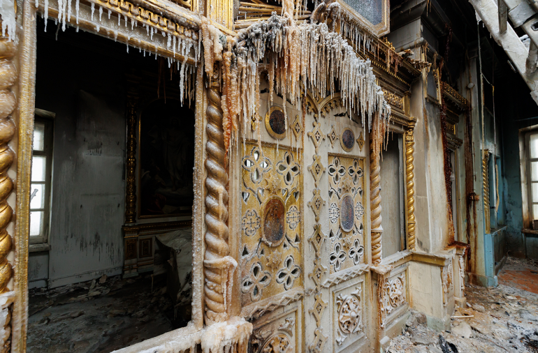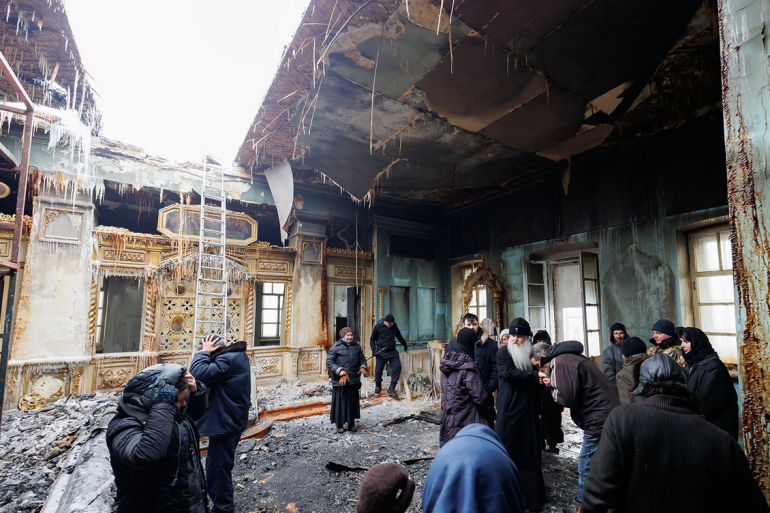 Сейчас сестры и прихожане разбирают сгоревшие и обвалившиеся перекрытия и куски кровли, очищают помещение от толстого слоя льда, в который превратилась вода, когда заливали огонь.