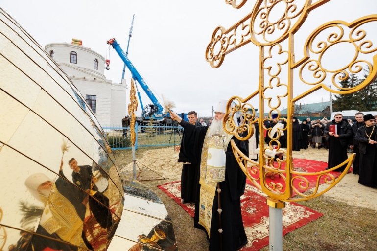 После освящения начались работы по установке куполов и крестов на основное храмовое здание и колокольню.