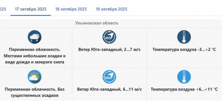 В ульяновской области в ночь на пятницу, 17 октября, ожидается переменная облачность. Местами синоптики прогнозируют небольшие осадки в виде дождя и мокрого снега.