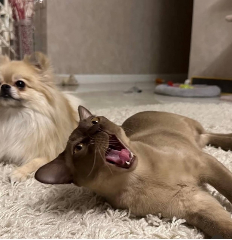 — Очень славный кот, он у нас в полгода переболел чумкой. Мы его лечили, прогноз был — не выживет. Но три недели борьбы, и кот с нами. Несмотря на частичный паралич задних лап, Бакс — сама доброта и любовь, обожает обниматься. Когда подходишь к стулу, он вытягивается и кладет лапы на плечи — наша норочка, — с улыбкой добавляет хозяйка. Бурма Бакс даже ведет «борьбу за близость к телу» с Боней, но при этом имеет свою «целую комнату» — спит в комнате младшего сына.