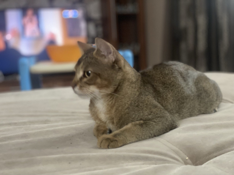 Кокос, второй кот, внешне и по темпераменту напоминает абиссинца. Он осторожен, спокоен и избегает конфликтов.