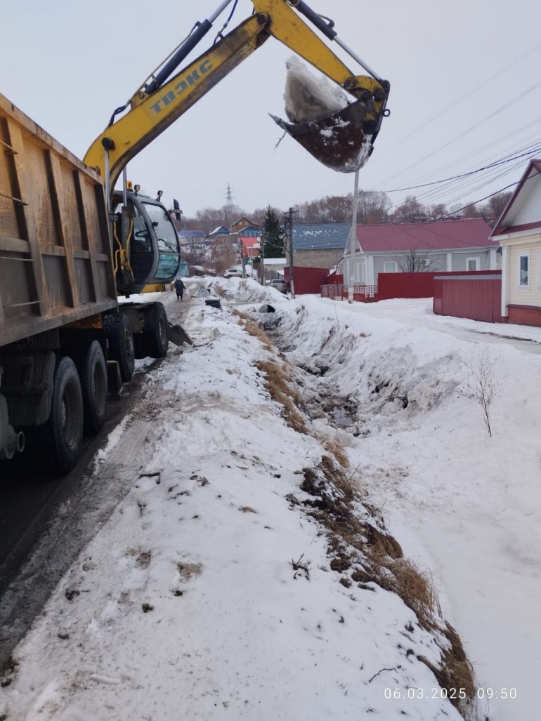 Вчера, 6 марта, на улице Ботанической в ульяновском поселке Мостовая Управление гражданской защиты и Управление инженерной защиты провели механизированную очистку водоотводной канавы.