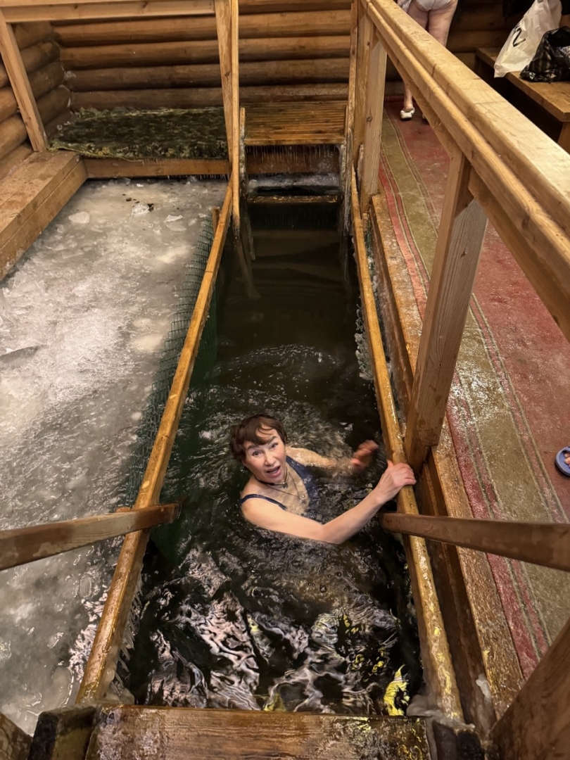 Основательница сети медицинских клиник Нина Березина по традиции совершила крещенское омовение в проруби.