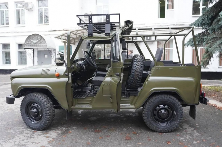 - Автомобиль с возможностью перевозки легко- и тяжелораненых построен на базе серийного УАЗ «Хантер». Он оснащен лебедкой. Все колеса имеют специальные вставки для движения при пробитых шинах. Двигатель адаптирован для работы на топливе низкого качества. Полностью изменена конструкция салона. Есть возможность для модернизации верха автомобиля – он сможет применяться как с закрытым тентом, так и с открытым. Предусмотрены места для установки средств РЭБ и возможность ведения боя в движении, - рассказали на автозаводе.