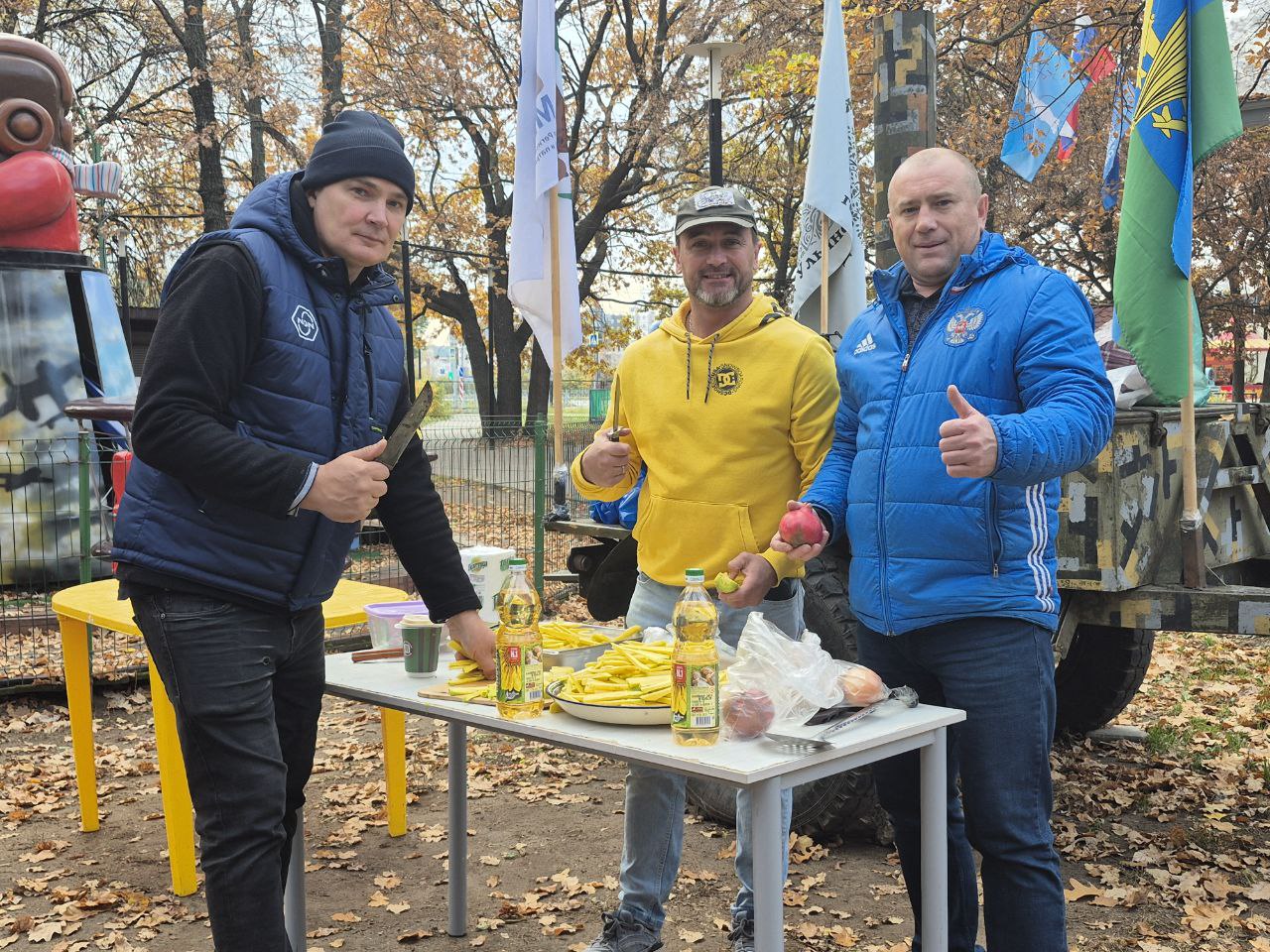С самого утра участники Совета отцов Ульяновской области готовили плов и настоящую армейскую кашу.