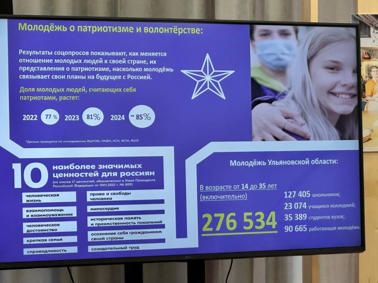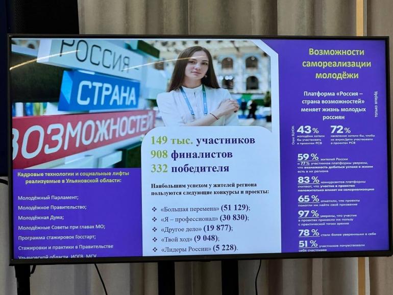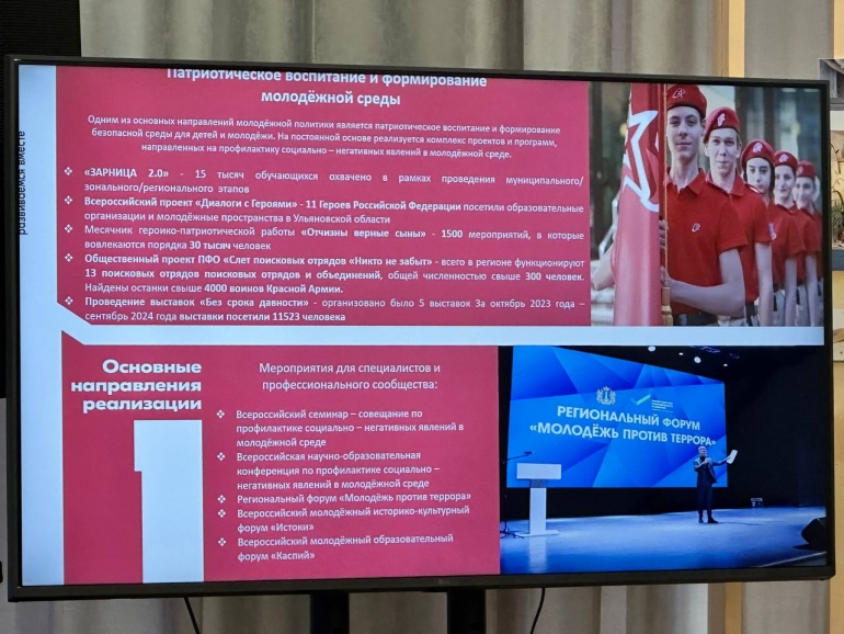 В 2024 году ульяновская молодёжь участвовала в федеральных и международных мероприятиях: молодёжный саммит стран БРИКС, проект «Мелодия БРИКС», Всемирный фестиваль молодёжи. Всего в 2024 году 235 представителей Ульяновской области участвовали в 37 федеральных молодёжных форумах;