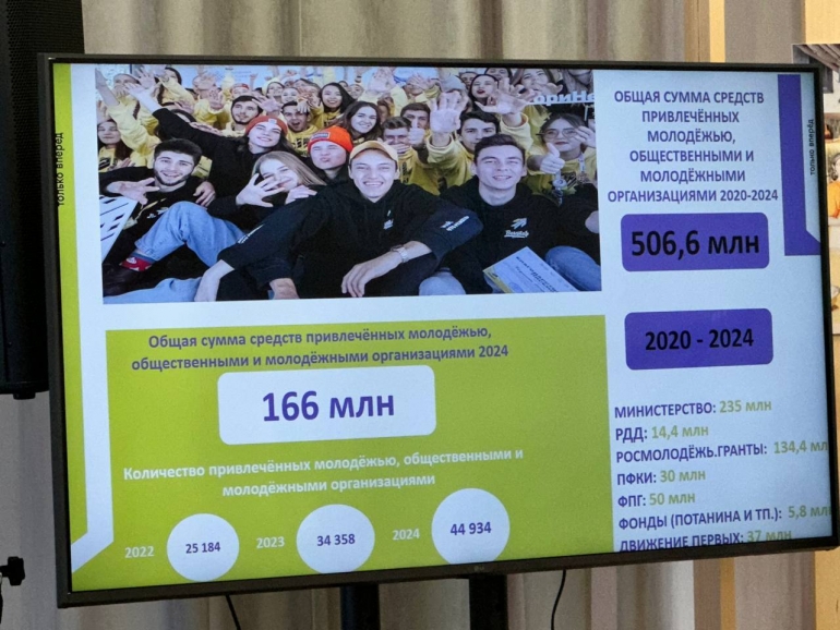 - Организации региона приняли участие в трёх ключевых грантовых конкурсах: Федеральный конкурс «Росмолодёжь.Гранты», Федеральный конкурс первичных отделений «Движение Первых», грантовый конкурс «Движение Первых». По итогам года регион сумел привлечь более 38 млн рублей на развитие молодёжных инициатив;
