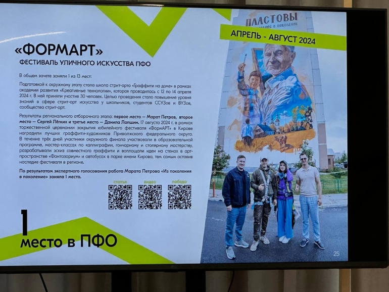 Одним из наиболее ярких проектов года стал фестиваль уличного искусства «ФормАрт», в рамках которого была организована школа стрит-арта «Граффити на доме». Ульяновский художник занял 1 место в окружном финале фестиваля;