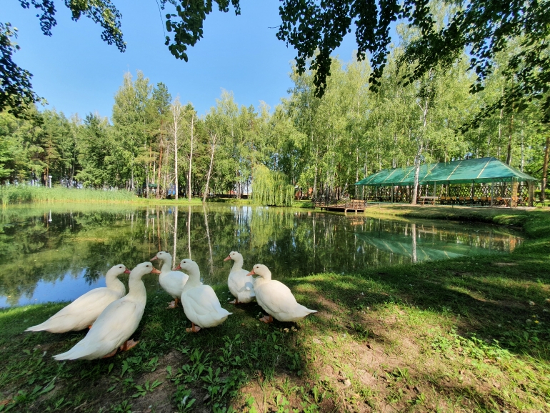 - Сценарий: Традиционный выезд на природу с «ол-инклюзив» сервисом. Можно арендовать беседку у воды или спрятаться в лесу у пруда с уточками.