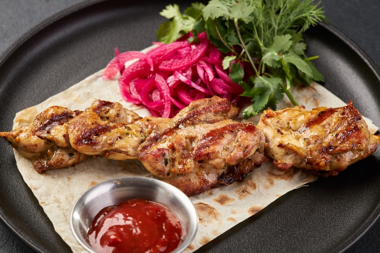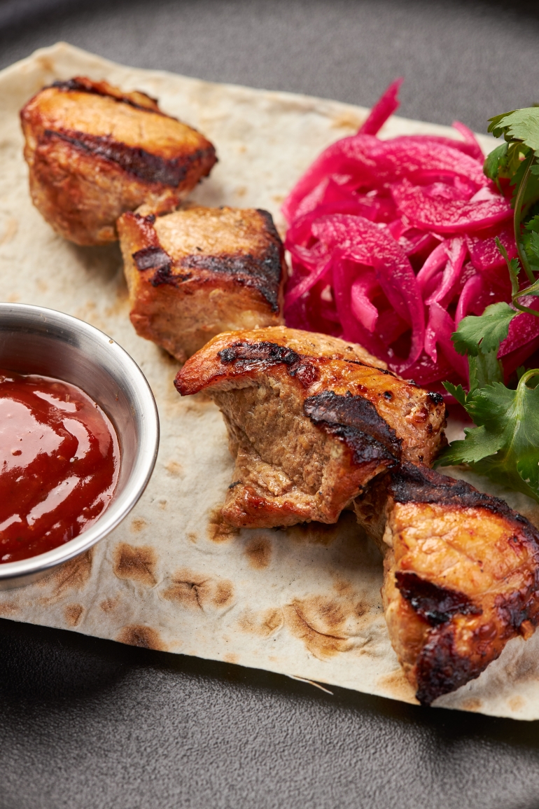 - Бюджет: Порция свиной шейки (180 г) — 370 ₽, шашлык из куриного бедра (220 г) — 320 ₽*.