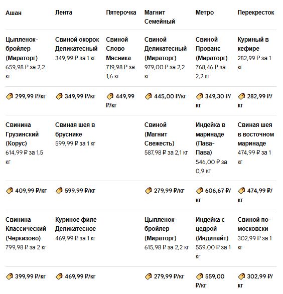 Корреспондент 73online.ru промониторил приложения доставки и выяснил, что за самым бюджетным сырым мясом стоит отправиться в «Ашан» — их фирменный свиной шашлык «Красная птица» обойдется всего около 250 руб/кг. Недалеко ушел и «Магнит Семейный», предлагая свинину примерно по 280 руб/кг. Если вы предпочитаете птицу, то в «Магните» и «Ашане» можно найти цыпленка-бройлера по цене около 300 руб/кг, а в «Перекрестке» — вариант в кефирном маринаде за 283 руб/кг.