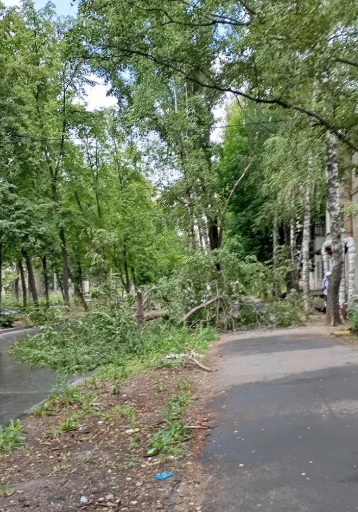 На этой же улице только во дворе дома № 14 молния ударила в дерево, и оно задымилось. Местные жители вызвали пожарных.