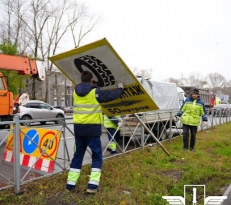 - Завершили первый этап по демонтажу информационных указателей и рекламы, где были выявлены нарушения ГОСТ и нормативного содержания.