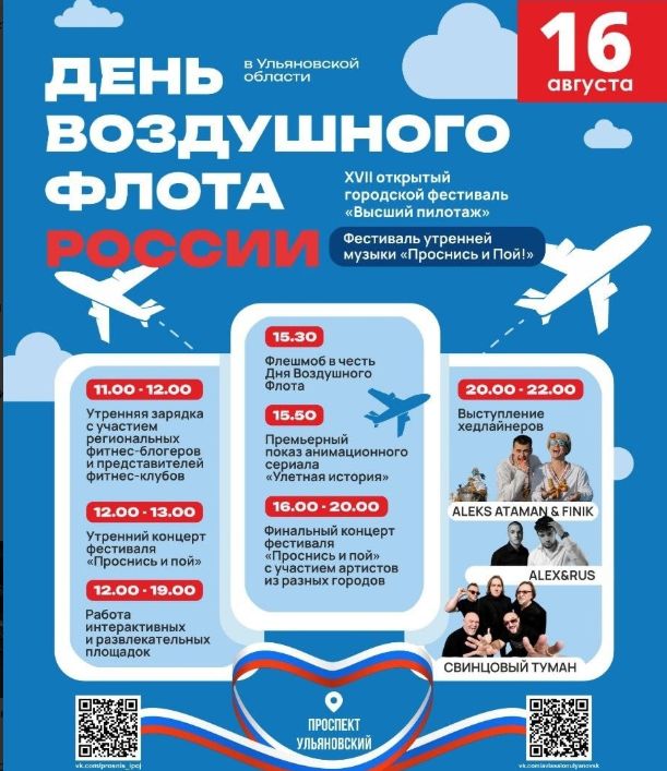 В Ульяновске 16 августа будут отмечать День Воздушного Флота России. На проспекте Ульяновском состоится городской фестиваль «Высший пилотаж».