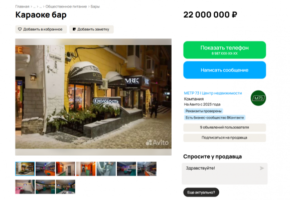 Объявление появилось на «Авито». Учредитель Сергей Чащихин предпочел не раскрывать причину продажи, однико, в отличие от гастро-бистро «Шибы», указал стоимость — 22 миллиона рублей.
