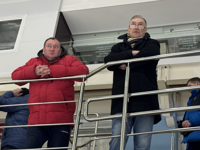 Олимпийский чемпион легкоатлет Владимир Крылов на трибунах ледового дворца не случайно: керлинг — тоже олимпийский вид спорта.